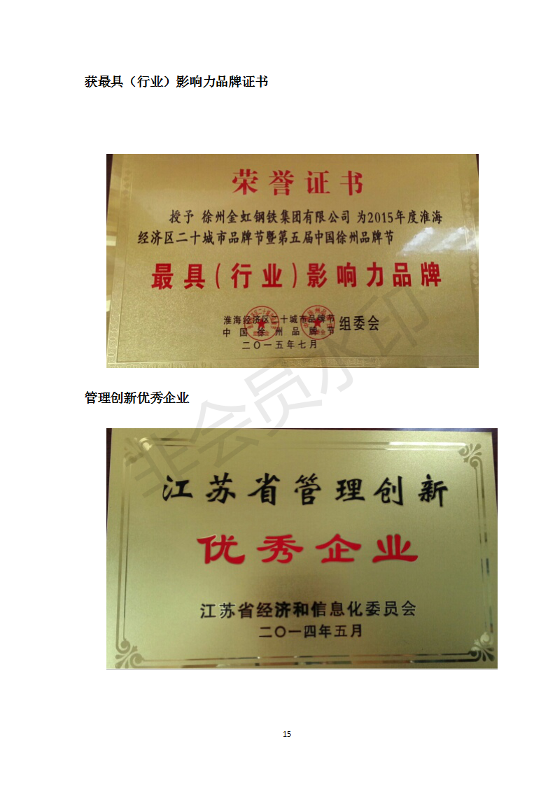 公示:徐州金虹鋼鐵集團有限公司質(zhì)量信用報告